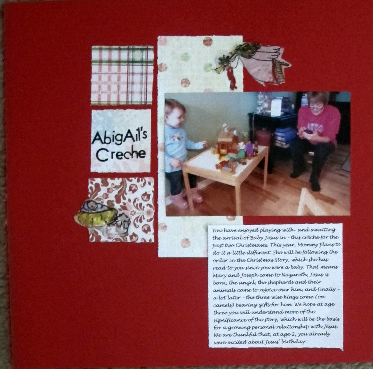 I'm still working away on an exciting week, the week we spent with the grandkids. I can't file that into "the past" until I have it scrapbooked, even if it is taking me three months to get everything scrapbooked. I will move on, I will catch up, in part because when I get to the 2013 photos I'll be taking a new and a little faster approach. But for now, enjoy my creativity.